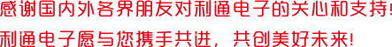 我相信,通過利通新網(wǎng)站這一平臺,能夠進一步加深廣大新老客戶對利通的了解和信任,能夠進一步增進新老合作伙伴友好關(guān)系的發(fā)展,能夠促進利通電子實現(xiàn)“創(chuàng)新創(chuàng)優(yōu)服務(wù)社會,增收增效回報股東”的企業(yè)愿景!